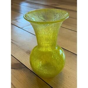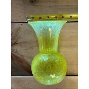 Beautiful Yellow Crackle Glass Flower Vase. Handmade in Hungary. Berry Cyrstal