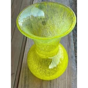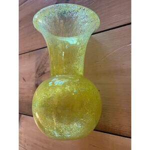 Beautiful Yellow Crackle Glass Flower Vase. Handmade in Hungary. Decor.