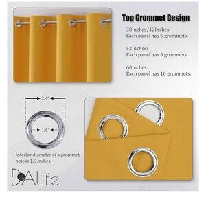DUALIFE Yellow Curtains 45 Inches Long Blackout Curtain Panels for Bedroom Room Darkening Gold Window Drapes Thermal Insulated