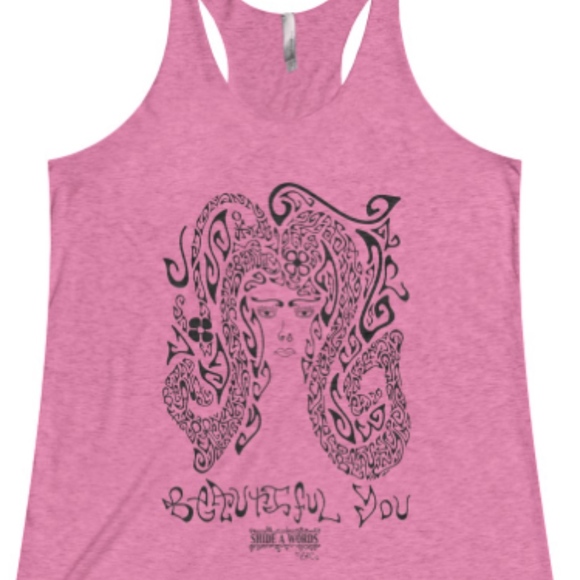 SHIDE A WORDS is an original form of art, which captivates the eye. Its vibrant colors, unique shapes and hidden words are interwoven into the design. The words that are hidden in this particular design are “BEAUTY”, “PRETTY". A must-have in every wardrobe. Shirts are printed on demand to ensure superior print quality. Please allow about a week to receive your new favorite tank from the time your order is placed.