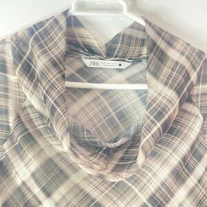 Beautiful Zara XL Cowl-Neck Plaid Shirt – Made in Morocco