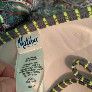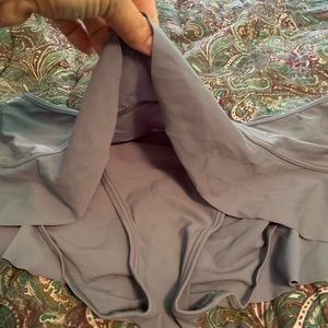 Beautiful bikini 👙 grey and bright green bottom made with little attached skirtsize large top is a XL