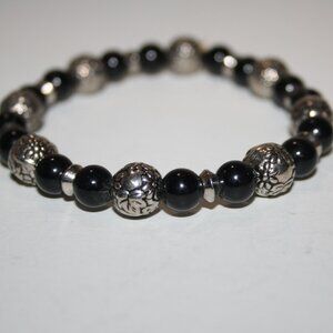 The bracelet is in beautiful condition. It's elastic for easy on and off.