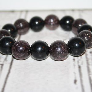 Beautiful black glitter chunky beaded bracelet 8"