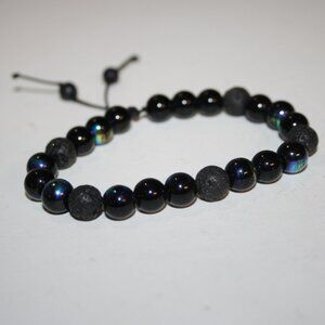 Beautiful black metallic glass and LAVA beaded bracelet Adjustable
