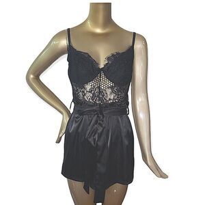 Beautiful black satin & lace lingerie inspired romper. Size M. Back zip