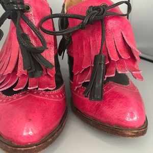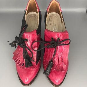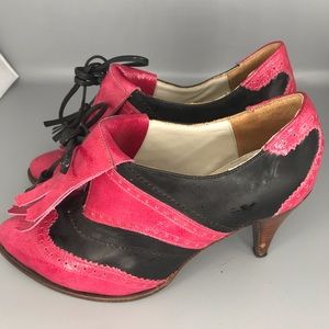 Beautiful black/pink Brogue Style Leather Heels