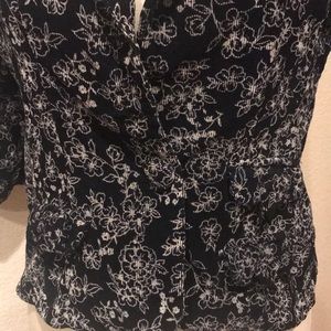 Vintage flower blazer from Nordstrom. Gently used but still a lot of life left. Missing one bottom. Corduroy. Inner liner loose. Reflected on the price. Size large but it fits more like a medium