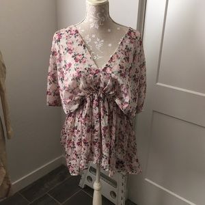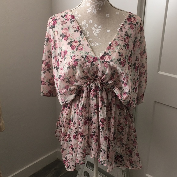 This is a beautiful blouse that can be worn over a tank it is in a blush pink color. Looks great with a pair of jeans.