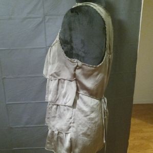 Green metallic drape ruffles, decorated see through top area, and tie up at the back of blouse. Dress up blouse