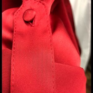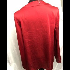 Stunning red blouse by Dana Buchman in size large with connected tank. Front is beautiful decorated with lace. Body is 100% polyester. Sleeves can be rolled up, see picture.