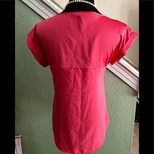 Beautiful coral blouse with short sleeves by Express. It’s a Petite small but looks very roomy. 109% polyester. Great condition.