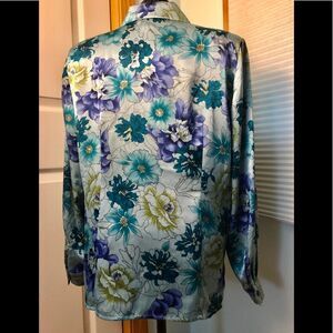 Beautiful blouse by Leslie Fay from the haberdashery collection in size 16.Has shoulder pads that can be easily removed. 100% polyester. Has a small run in the front, see picture.