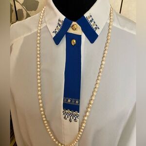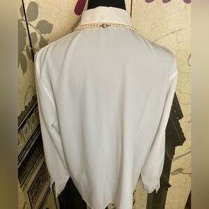 Gorgeous blouse by Ara in size large. Measured across from armpit to armpit is 22” and length measured from shoulder to bottom is 28” Has hidden buttons. Has a name tag inside. 100% polyester. Excellent condition.