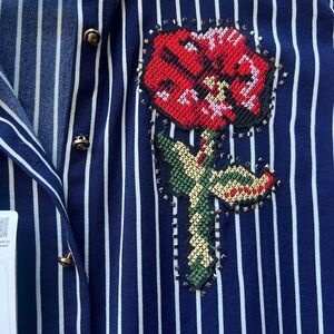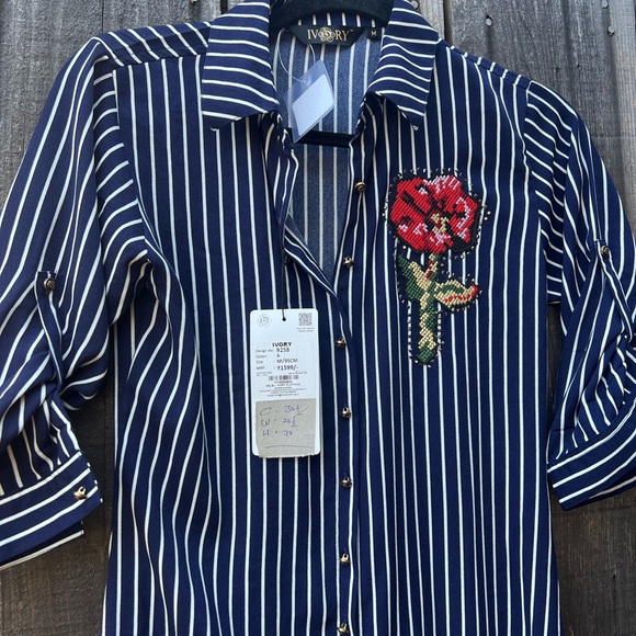 New striped dress/Blouse a beautiful embroidered rose gives this dress an elegant look.