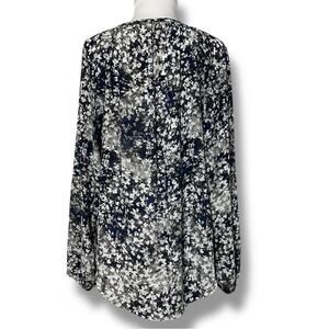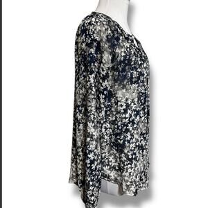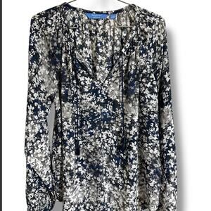 Beautiful blue grey black Vera Wang flowy floral long sleeve top with tie size L
