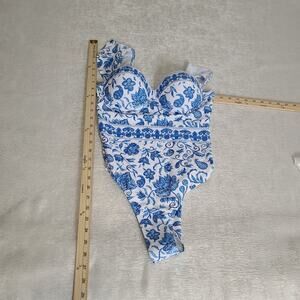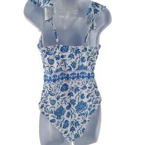 Beautiful blue/white floral one piece swim suit Size Medium Underwire lined cup