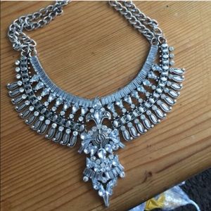 New. Get noticed in this beautiful boho jeweled necklace. Not super heavy. It features rhinestones and it is adjustable. Full set. 3rd and 4th pics are the real pics. Glam statement necklace
