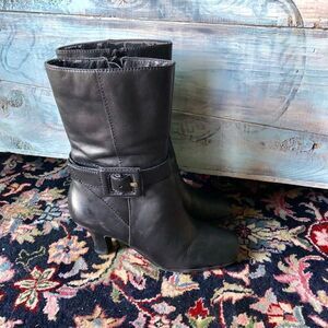 Beautiful black leather boots by Arturo Chiang in size 71/2 medium. These are roomy for a 71/2. Heels are 2.8”. These are in perfect condition on the outside but have some wear on the top edge on the inside, see picture. Not visible from the outside.