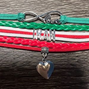 This is the tricolor flag of Iran. It is mandatory for every Iranian anywhere in the world to have a sign of their homeland.