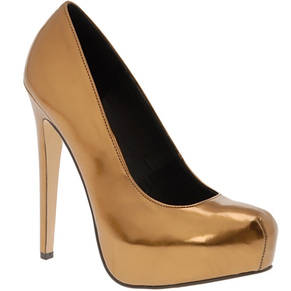 Worn once for 2 hours. Comfortable, well fitted pumps great for any occasion. Strong and well made pumps, gorgeous bronze-gold color and sleek shape. Size says 6 but fits like size 5! Heel height 5.5 inches, platform height 1.5 inches.