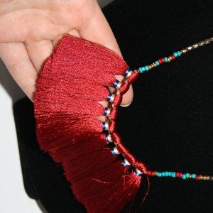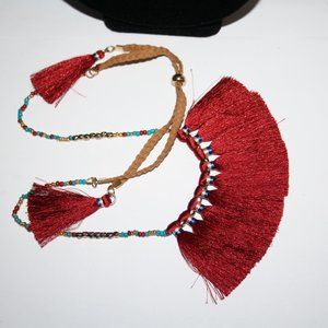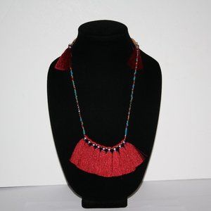 Beautiful brown, turquoise and red tassel necklace adjustable