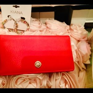 Beautiful red wallet leather with earrings so pretty . Great leather a d color for the holidays . Pretty sparkle hoops for dress up. Super cute bundle