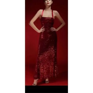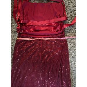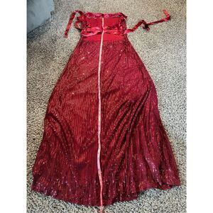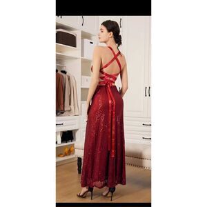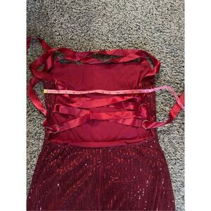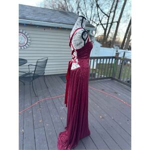 Beautiful burgundy sequin, backless lace-up gown. Built in slip. Hiden back zipper , Her tag has been abducted.. lol