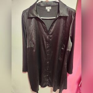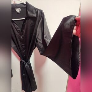 This dress has only been worn once, and it's so cute! Size 1X, button down, tie waist to cinch you in, bell sleeves, midi length, and super comfy. This dress feels silky and is easy to move around in.
