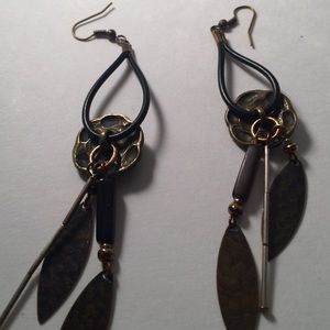 This beautiful vintage style hand made leather and buttons earring, , bundle to save for shipping