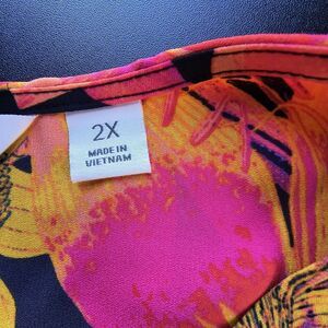 Beautiful by Lawrence Zarian 2X Top Paradise Tropical Multicolor Tiered Floral