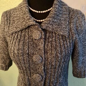 Beautiful knitted cardigan by New Directions in size medium. Has elastic in the back. 100% acrylic. Excellent used condition.