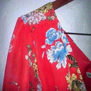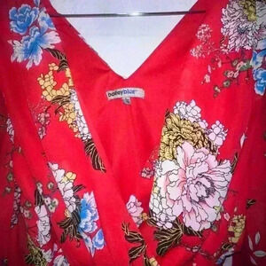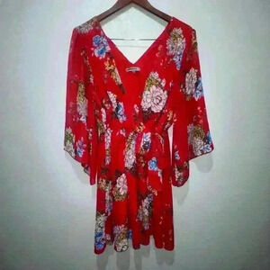 Beautiful chiffon Bailey Blue Dress, Woman’s size Large! Red Floral design.