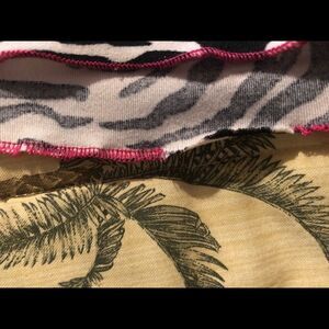 Comfy soft pjs n zebra stripes by Kathryn in size large. 95% polyester and 5% spandex. Some wear on the bottom of the leg , see picture. Gentle used condition. Elastic waistband and adjustable streps.