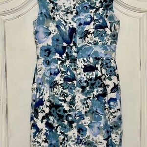 Beautiful blue and white aline fitted lined dress with back zipper. In great used condition.