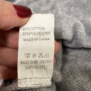 Beautiful cowl neck long sleeve mottled grey cotton blend knitted sweater. Feels like fine wool. Band at bottom. Works well with jeans leggings or pants and skirts. Washable. Size Medium.