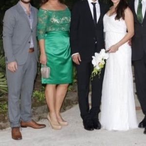 Beautiful lace and peau de soie grees dress. Custom made for my daughter’s wedding. Lined.