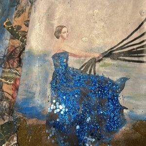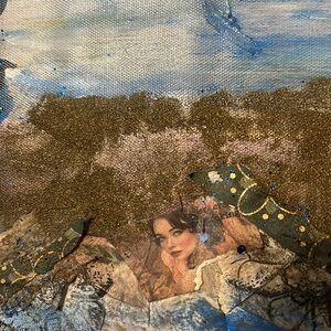 Portraits name is I am free. Handcrafted decoupage mix, media art. One of a kind. 16 x 20.