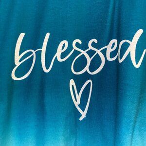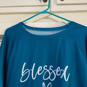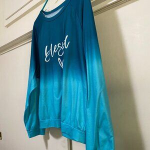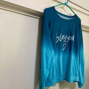 Beautiful deep blue to turquoise sweatshirt w/blessed & heart, size 3XL