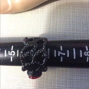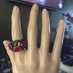 Beautiful artisan handcrafted design stylish elegant band size 6.5 black rhodium over silver stamped 925 treated ruby 3stones ring width size 28x18mm beautiful artwork treatment heated Nwot