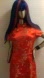 lightweight beautiful red Chinese dress that zips down the side also opens up in the front for adjustability has two slits on the side beautiful color in red print nice to wear out to dinner or casual dress