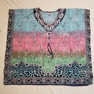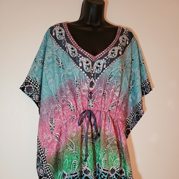 Lightweight adjustable drawstring top. Can be use alone, with pants or even as a beach cover -up! One size