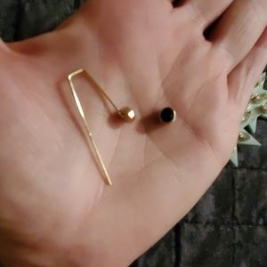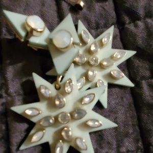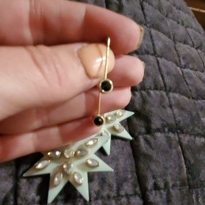 Icy mint moonstone/rhinestone and silver statement set and black stone and gold drop down set.