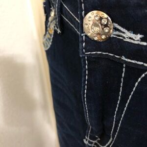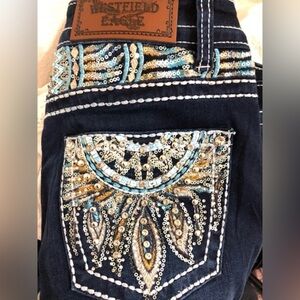 Beautiful southwestern style embroidered sequined pocket crystal studded blue jeans size 9 new