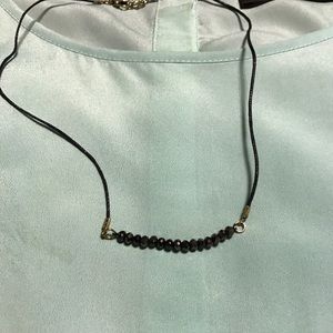 Dainty hematite bar style necklace with black rope. Hematite is good for chakra healing.
