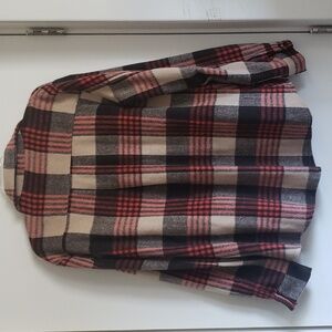 Gorgeous fall colored shacket by Blue B. Size large. Button up front. Side slit pockets. Pleated back yolk. Warm and cozy. Sleeve length is 29". 26" From shoulder to bottom hem.