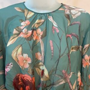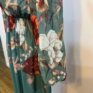 Beautiful floral long sleeve green dress /size S