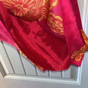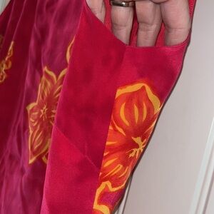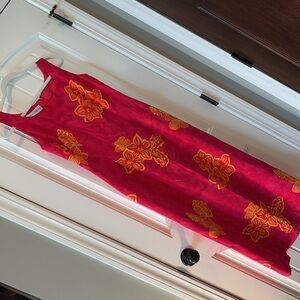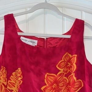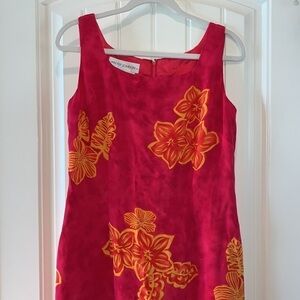 Beautiful floral tropical hot pink silk dress midi/maxi size 10 Beachy Hawaii