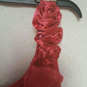 Beautiful formal dress, worn once, shell 97% polyester 3% spandex, mesh 100% polyester, lining 100% polyester.