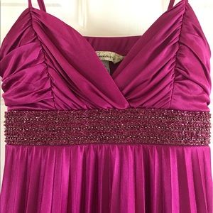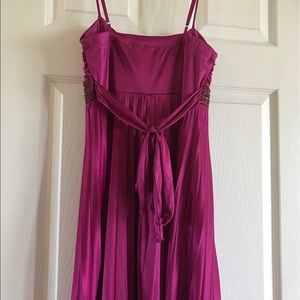 This is a beautiful dress, only worn once. Beaded front adds a lot of detail. Size small. Back has a tie. Small stain on front, size of finger tip. Barely noticeable, last picture is of that stain.